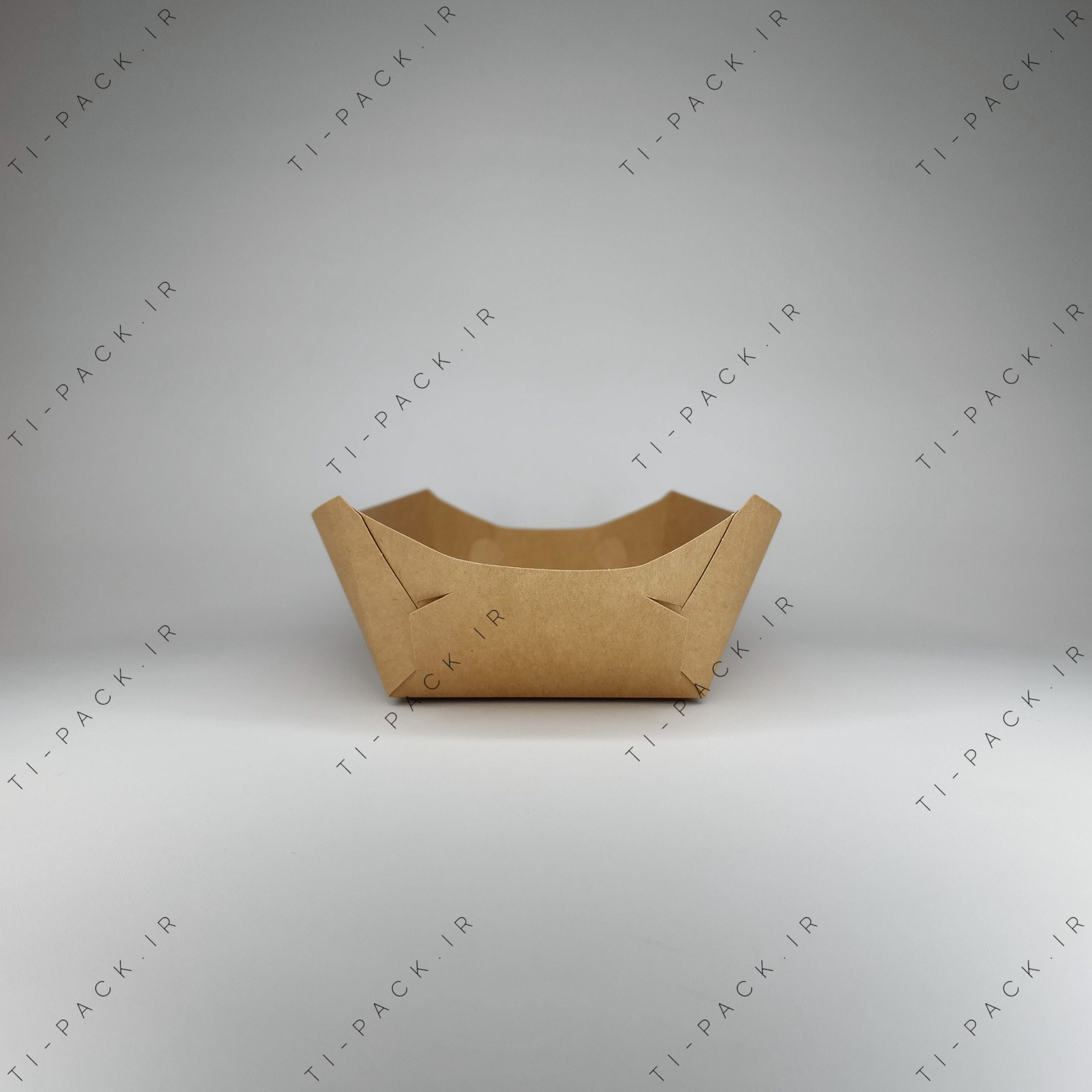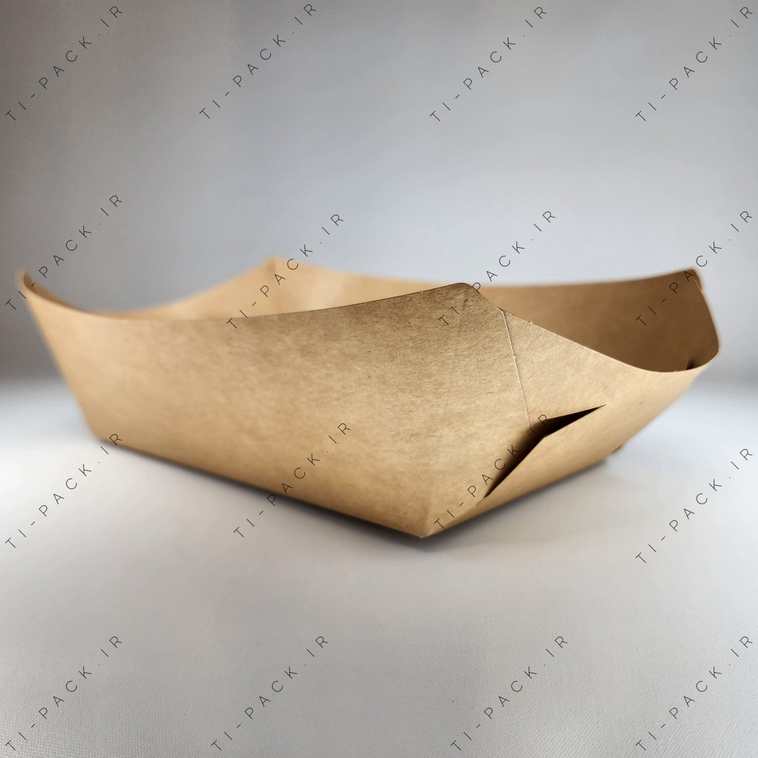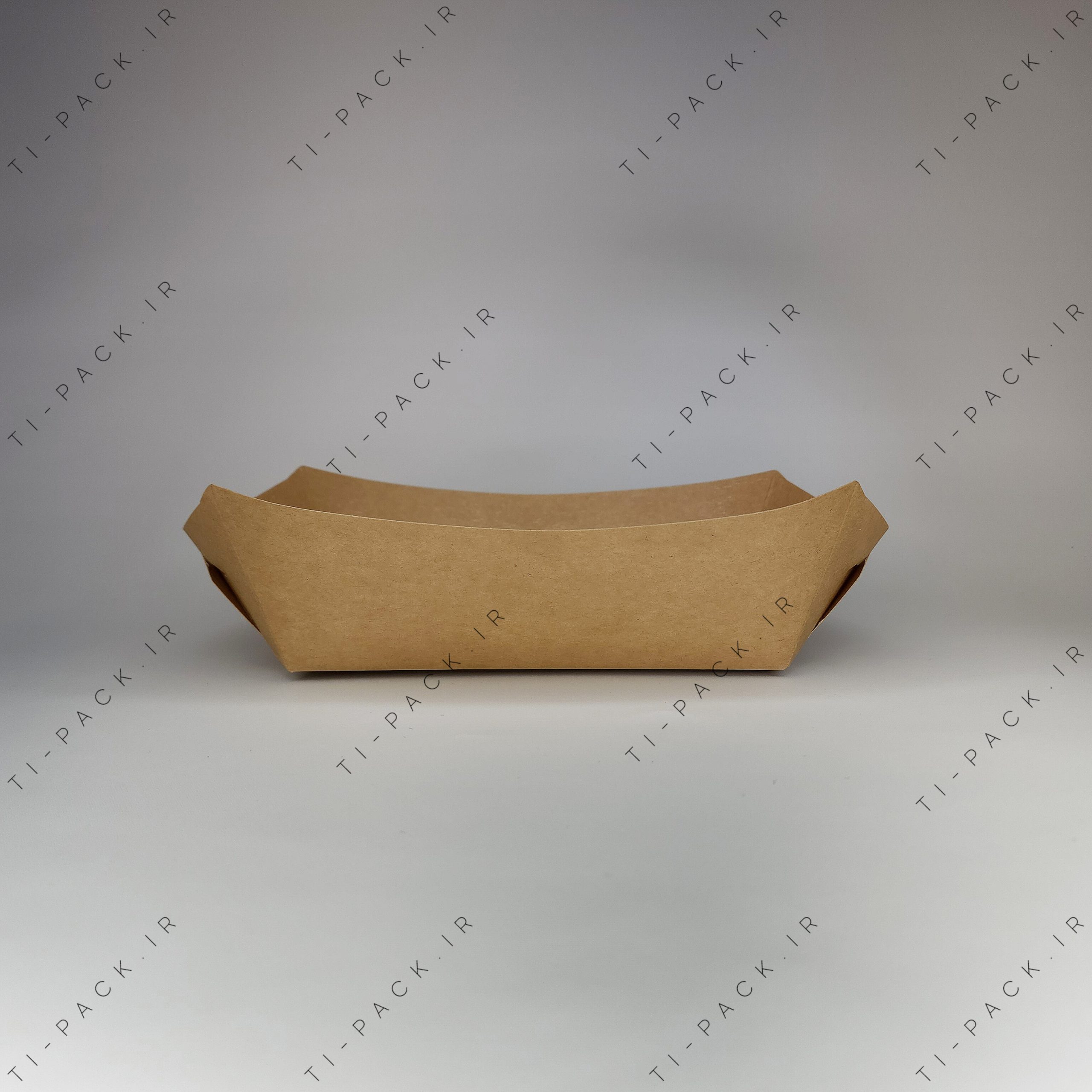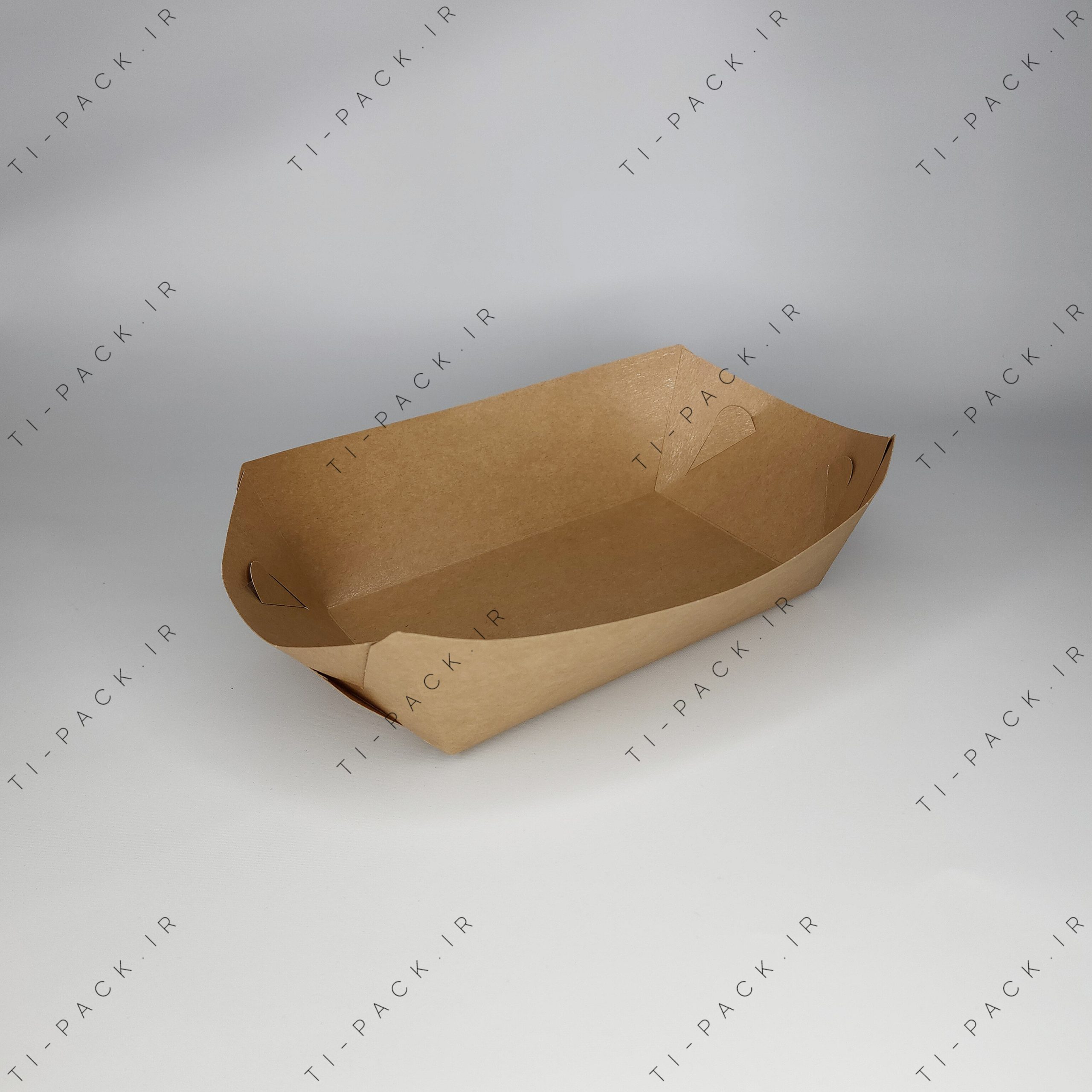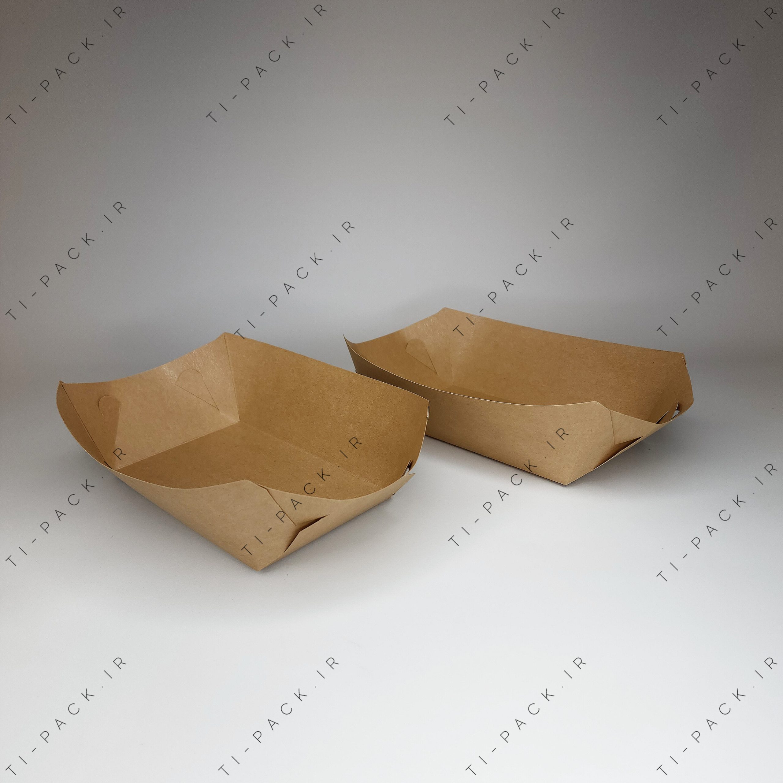 سایز بزرگ: بیشترین فضای داخلی را دارد و معمولاً برای سرو غذاهای اصلی داخل سالن مانند مرغ سوخاری کامل، برگرهای دوبل یا فیش اند چیپس استفاده میشود.