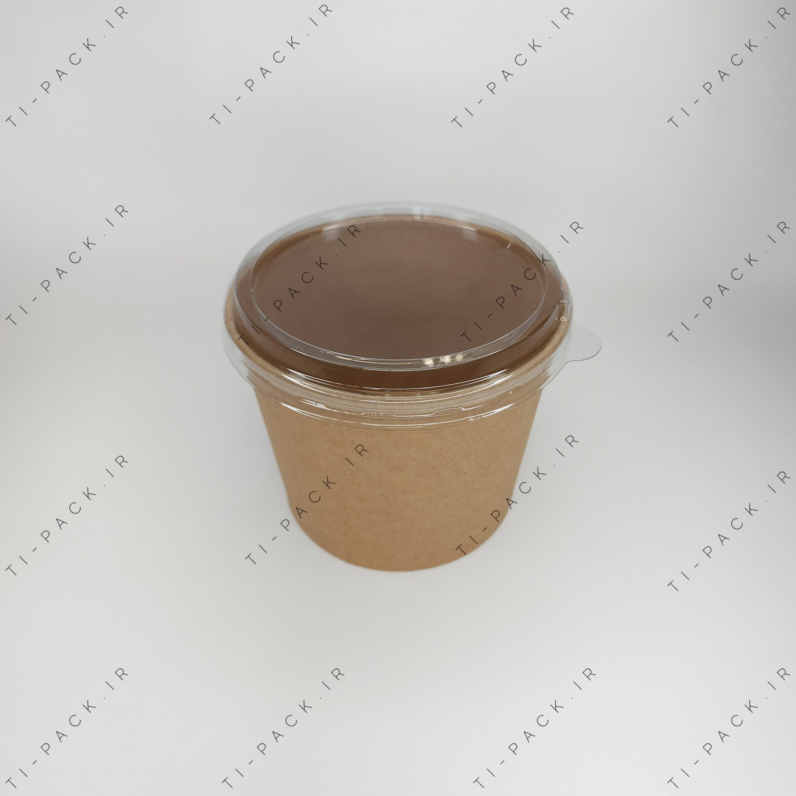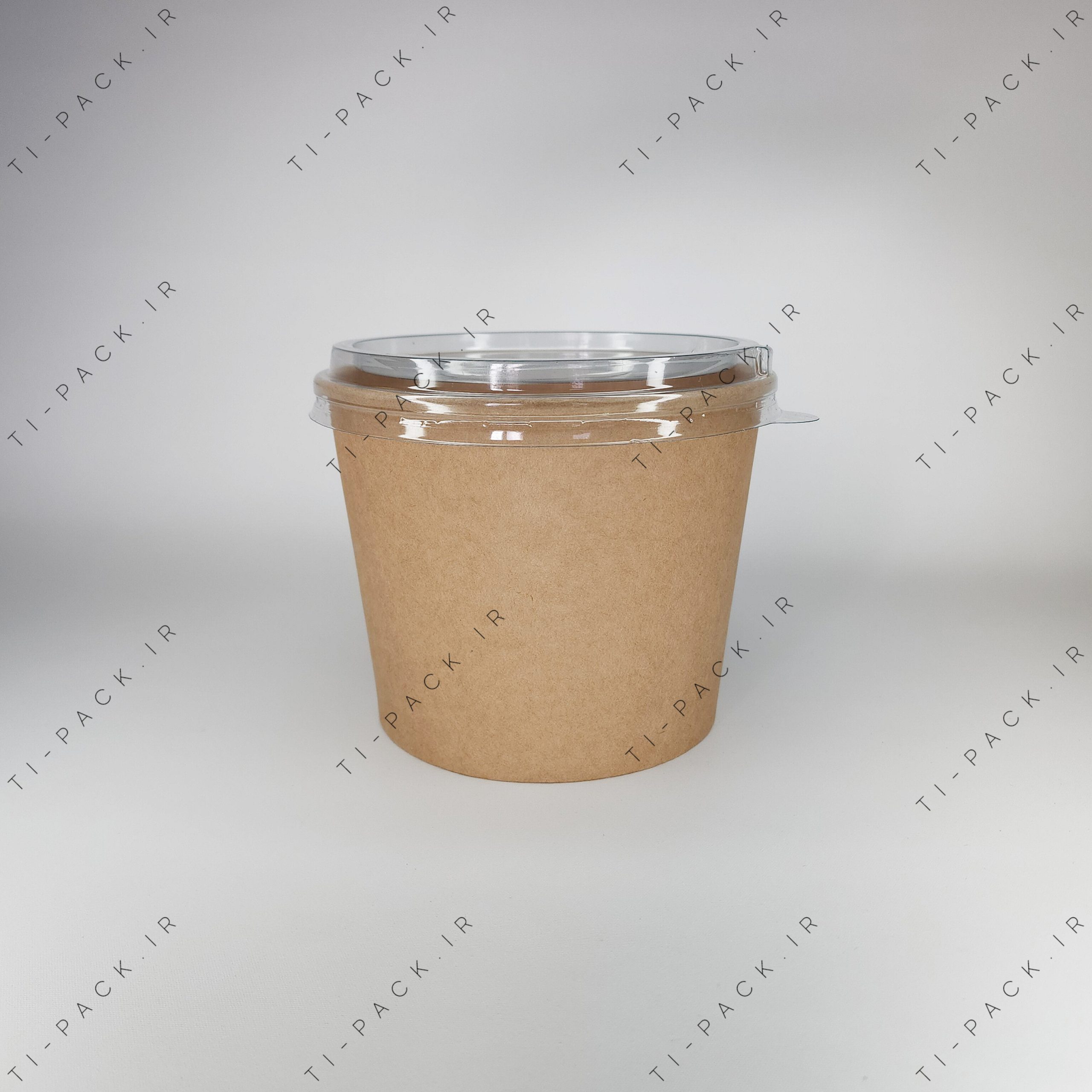 سطل کرافت ۱۰۰۰ سی سی (۱۰۰۰ میلی لیتر) با درب شفاف PET مناسب بسته بندی میان وعده و فست فود، دارای پوشش ضد رطوبت و چربی و طراحی کاربردی برای استفاده در رستوران و بیرون‌بر و همچنین برای بسته بندی انواع شیرینی و کوکی می‌باشد.
