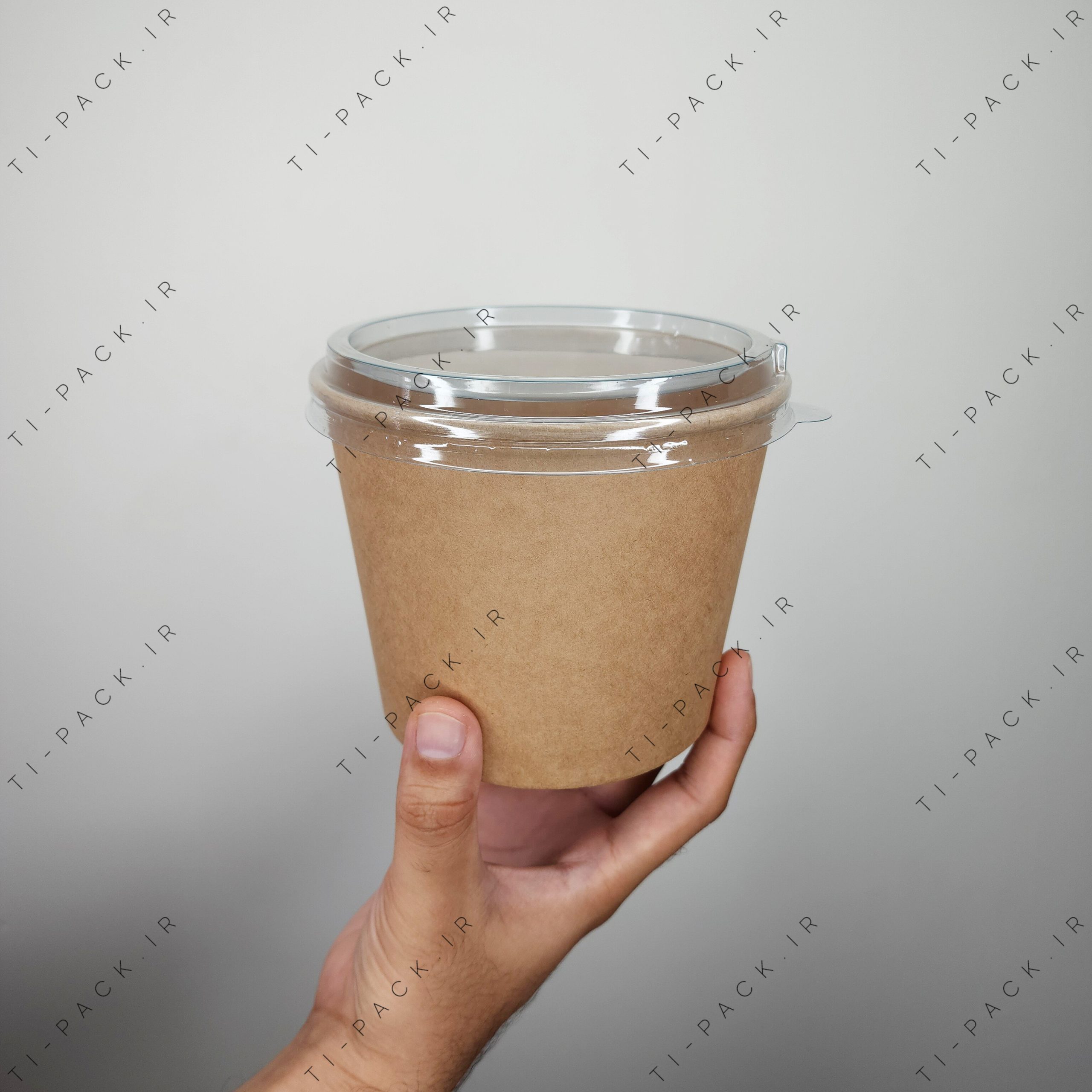جنس بدنه این محصول از کاغذ کرافت باکیفیت است و برای افزایش مقاومت در برابر رطوبت و چربی، لایه داخلی آن با پلی‌اتیلن (PE) پوشش داده شده است؛ به همین دلیل از نشت مایعات و چربی جلوگیری کرده و باعث می‌شود شکل و کیفیت بسته‌بندی حتی پس از مدت زمان حمل حفظ شود. این ویژگی برای غذاهای داغ و روغنی مانند انواع فست‌فودهای سوخاری، سیب‌زمینی سرخ‌شده، پاستا، سالاد، دونر و حتی غذاهای آسیایی مانند نودل بسیار مهم و کاربردی است.